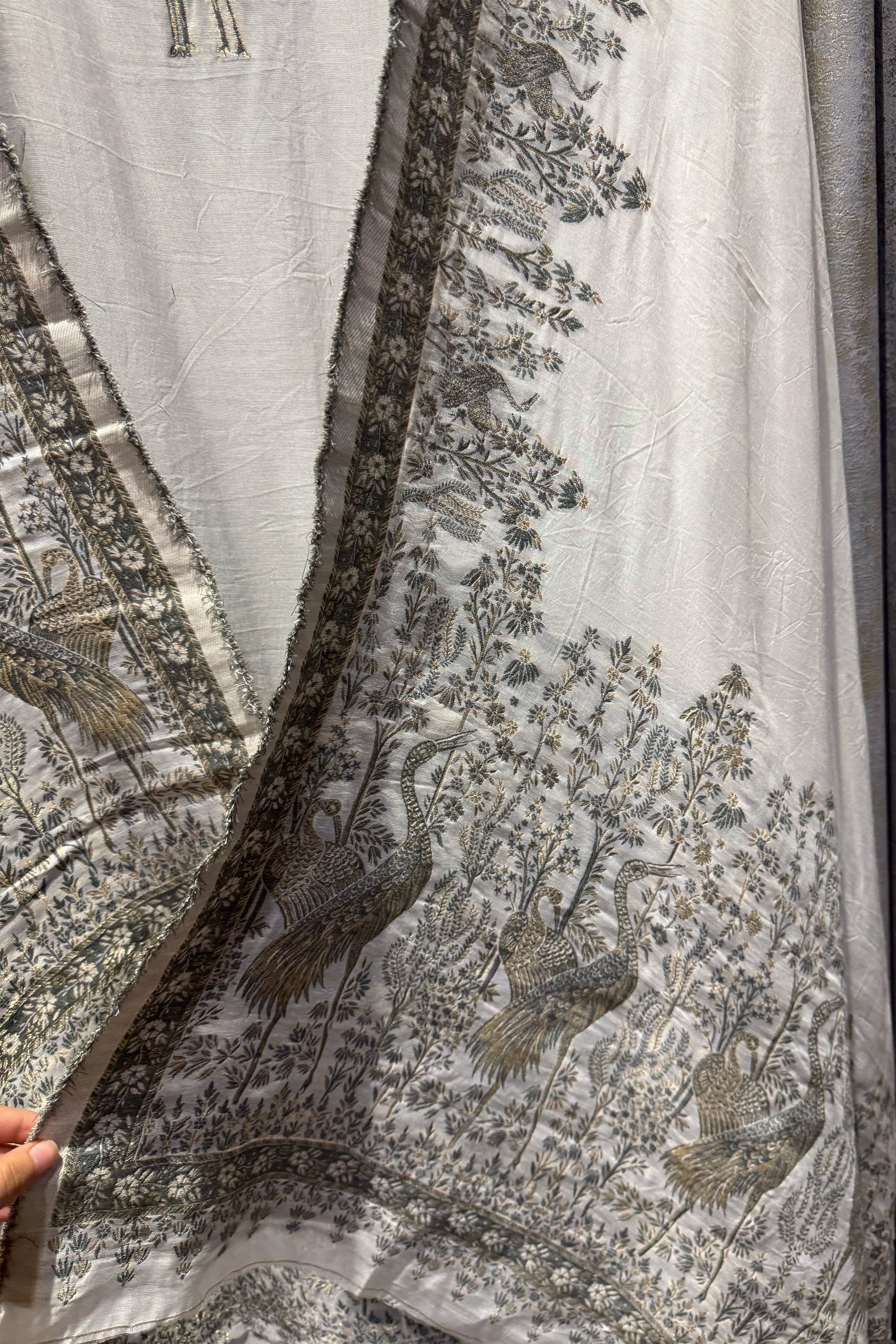 - Paired with a heavy woven dupatta, finished with a four-sided border, this set brings together tradition and timelessness.