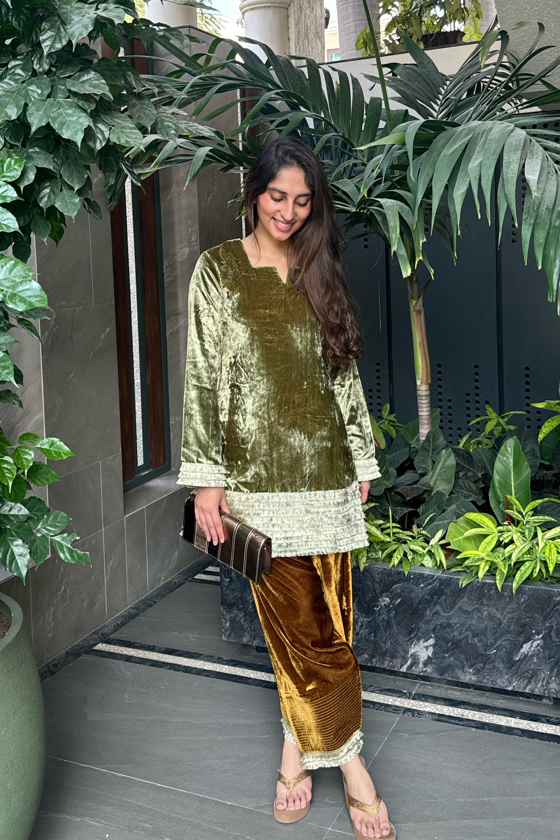 Velvet Contrast Coord Set with Farshi Salwar and Kiran Lace Border